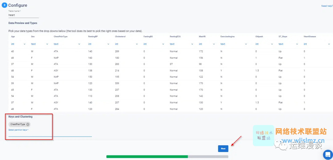 数据上传后,您可以在“配置”部分查看数据,要完成加载过程,您需要提及分区键。