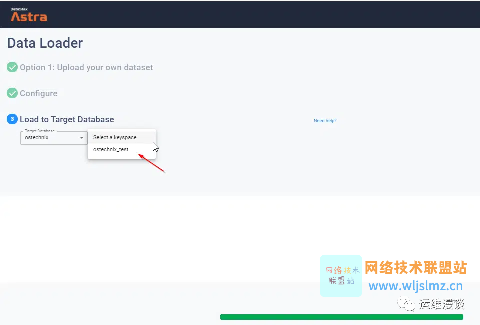 选择要加载数据的数据库和键空间。单击下一步完成加载过程。