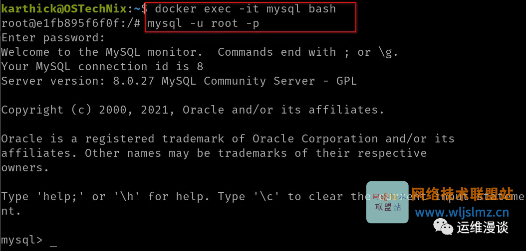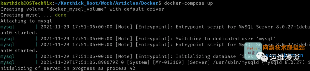 现在运行以下命令,这将启动 MySQL docker 容器。