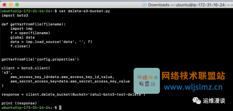 创建一个文件“ delete-s3-bucket.py ”,其中包含删除存储桶的代码。将以下代码复制粘贴到其中。