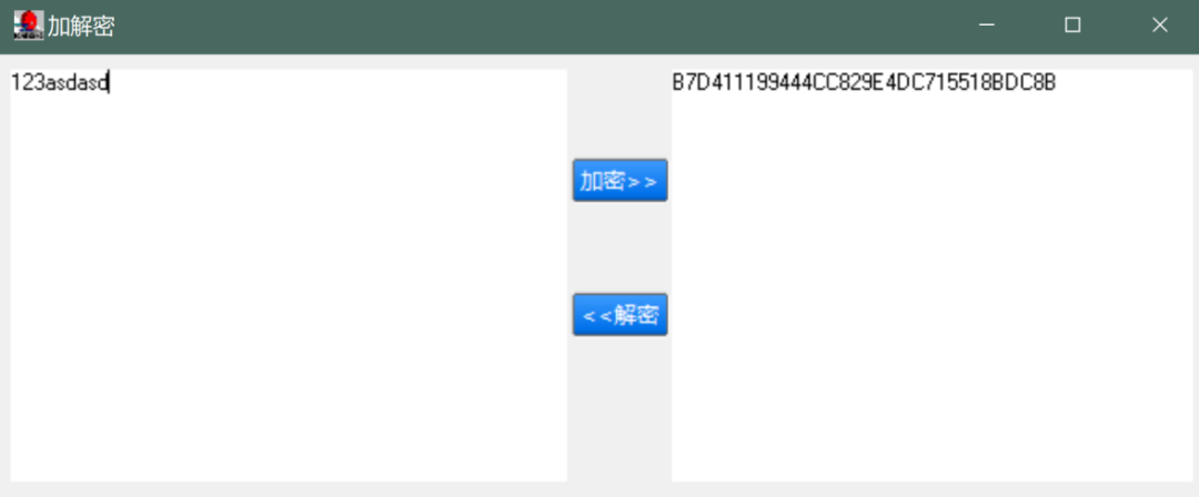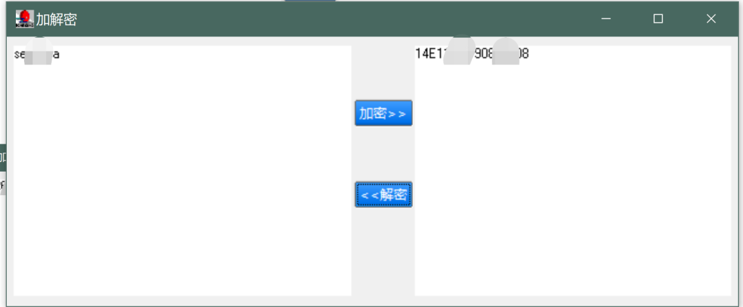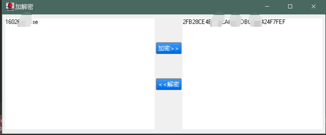 本文模拟某机构使用二层架构的C/S程序环境,数据库文件保存在本地,通过本地程序[SysConfig.exe]对数据库配置文件进行加解密,如下图所示。该程序在进入时通过静态口令(密码)进行身份验证,通过验证后进入加解密功能模块可以直接使用加密功能,解密功能仍需再次进行口令验证,程序使用对称算法对数据库配置文件进行加解密,并通过得到的数据库信息进一步获取数据库的系统权限。