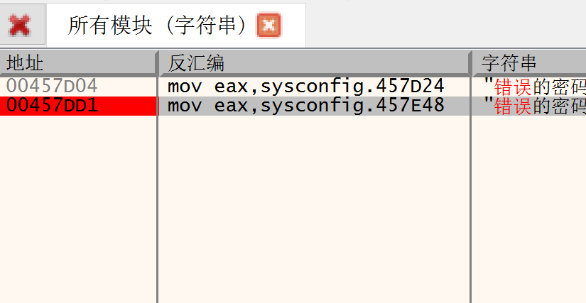 1)得知输入错误密码后会产生错误弹窗“错误的密码”,对该字符串进行搜索。