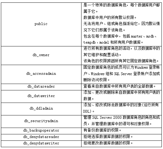 开发者应当在程序部署完成后移除相关的数据库加解密程序,规范运维流程,同时对数据库的权限进行分离,实行最小权限原则。SQL Server中的服务器角色权限如下表所示: