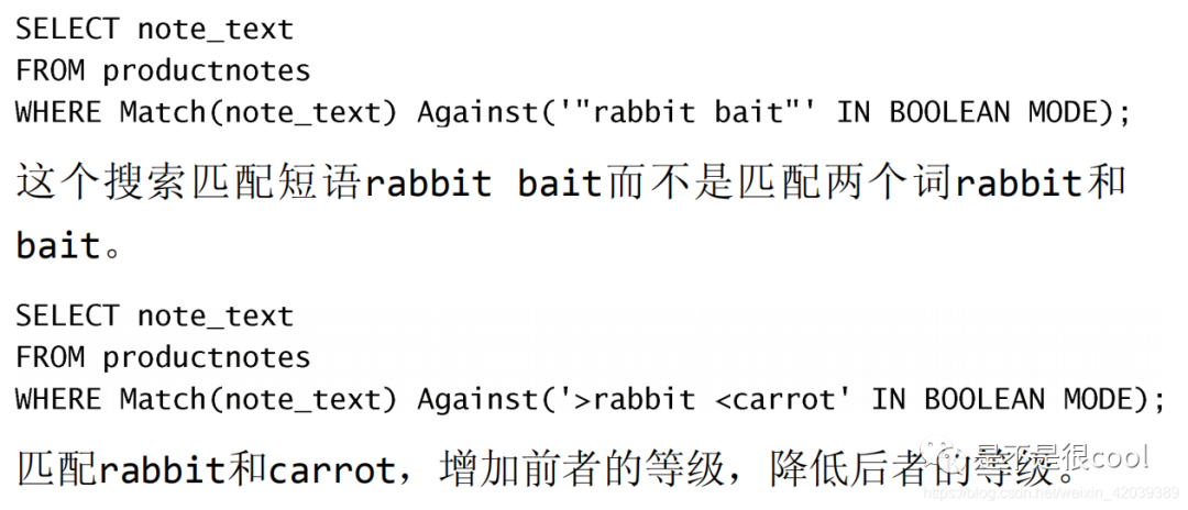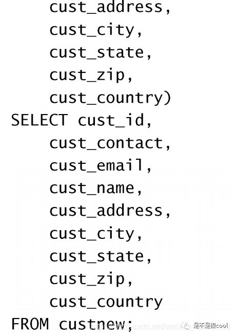 子查询有一个重要运用,就是通过子查询连接两个关系表1. 查找数学86分和65分的同学的国家:select country from student_family in (select id from student_info where math=(86,65)); 注:在WHERE子句中使用子查询(如这里所示),应该保证SELECT语句具有与WHERE子句中相同数目的列。通常,子查询将返回单个并且与单个列匹配,但如果需要也可以使用多个列。子查询通常用IN连接而不是where;2.下面再来看一条select语句的子句,select name ,(xxx) from student_family; 注:这种查询方式,是对每一行再进行了一次select,在select里嵌套的select一般必须是聚合计算;