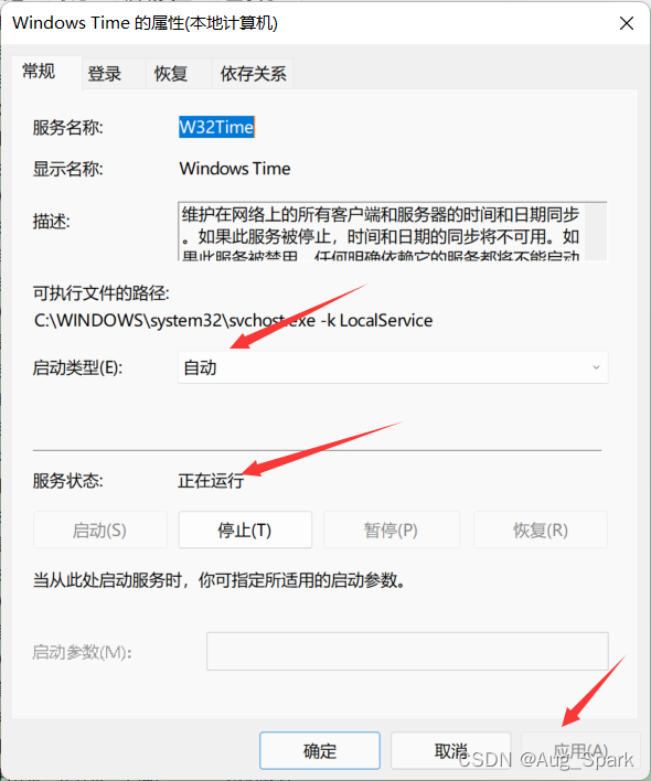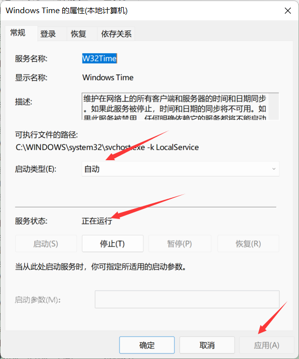 3 在Windows Time的属性(本地计算机)对话框中,执行以下操作: