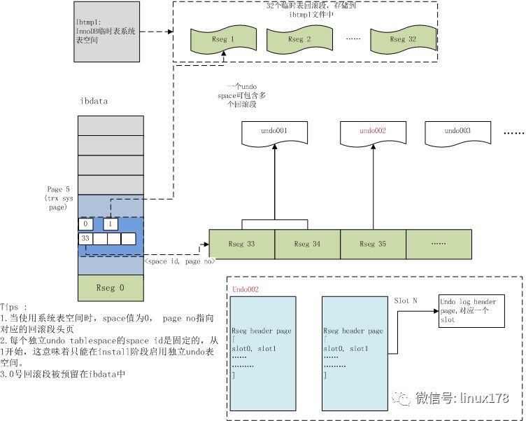 rseg 1~rseg 32这32个回滚段存放于临时表的系统表空间中;