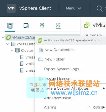 只需在清单窗格中右键单击您的 vCenter,然后选择导出系统日志...