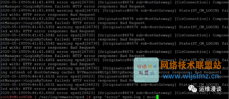 grep 'error' vpxd.log | more