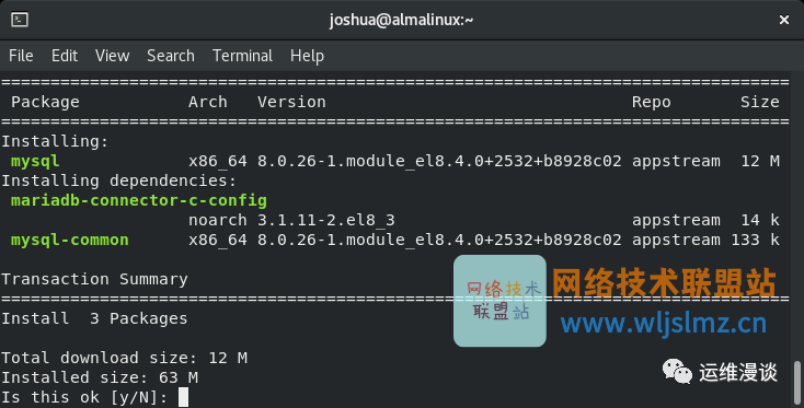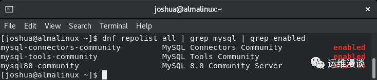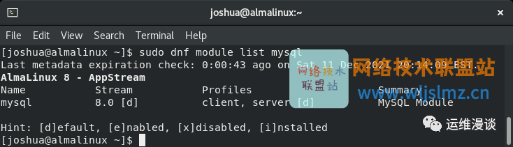 AlmaLinux 在其 AppStream 中带有 MySQL,但是,它不是最新版本。