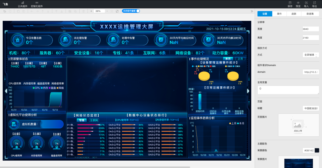 下面我们来看看利用飞鱼平台,低代码甚至0代码开发出的大屏能达到怎样的效果。