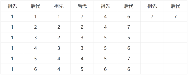 WHERE descendant = 7;