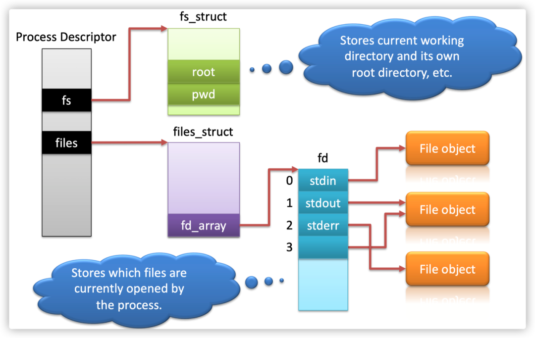 是文件被打开的状态,每个进程执行文件的系统调用都会实例化file