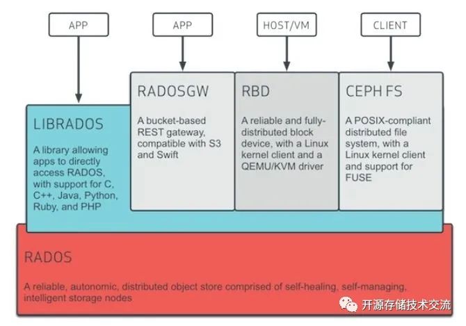 rados之上有一层librados,提供底层服务的接口