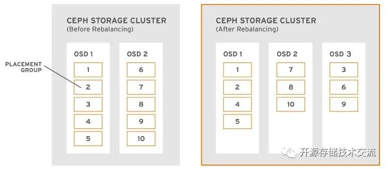 集群扩容,当添加新机器或者新osd到集群,cluster map改变了。添加新的osd意味着crush算法伪随机把原来osd中的pg迁移到新的osd中,这个是自动的过程。