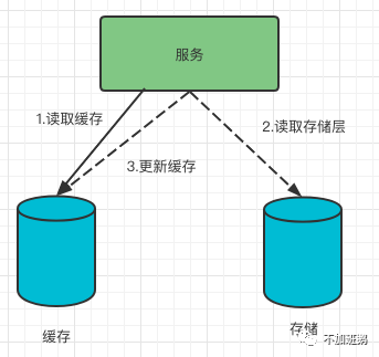 该场景下数据的读取都是先从缓存中读取,读取不到再从存储层读取,然后更新到缓存。