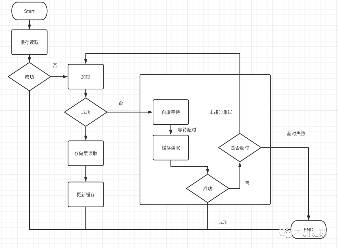 实际上对于go熟悉的话,系统库已经提供了缓存击穿的解决方案singinflight。基本原理相似都是保证对于同一个key的请求只有一个会传统到存储层上,不过在缓存更新成功之后singleinflight库采用了主动唤醒的方式,让等待这个缓存的所有协程能够快速读取缓存返回。singleinflight库的源码解析后续会再写个分析文章详细解读下。