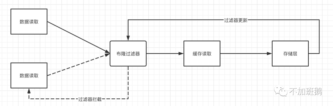 缓存穿透和击穿不同的点在于穿透是由于请求的数据是本身不存在的或者恶意请求的数据导致大量请求穿透到存储层从而对存储层造成很大的压力。由于数据不存在所以这类数据每次请求都会去访问存储层,对这类数据的拦截有两种常见的解决方案。