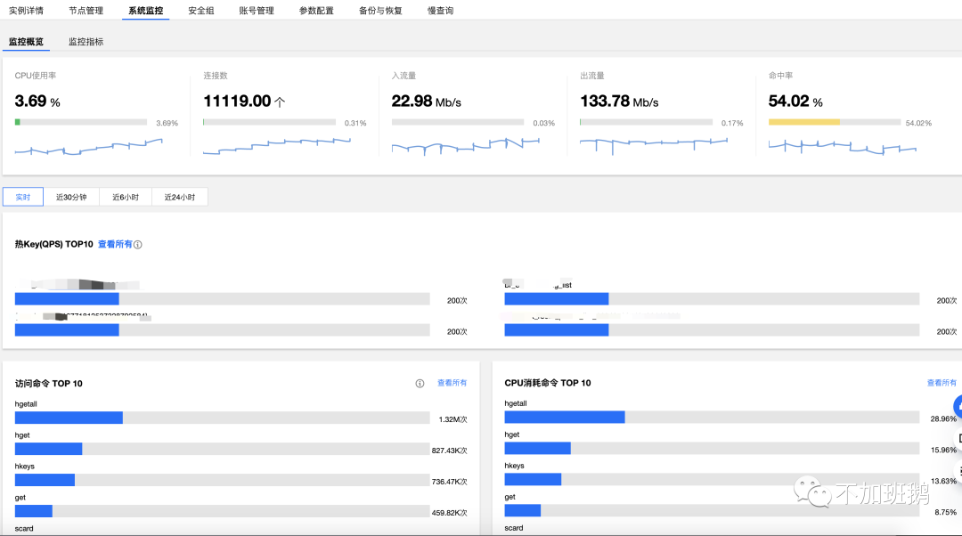 监控是任何系统运营中都必不可少的部分,对于基础组件的监控尤其如此。除了常见的负载、流量、并发请求等监控之外缓存系统还需要特别注意缓存命中率的指标。对于这些基础组件的监控指标的异常要能及时告警出来。