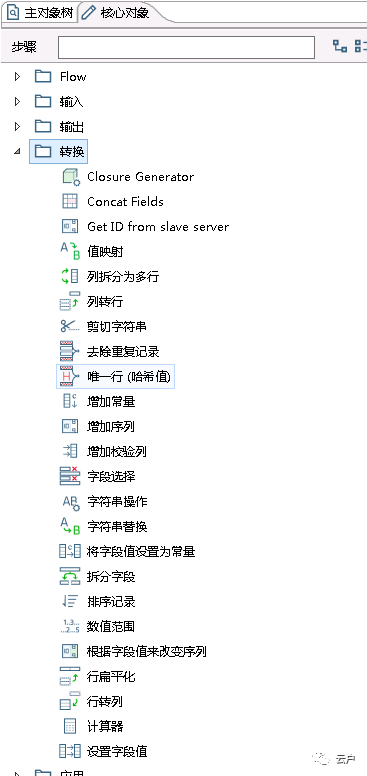 转换是kettle中的一个对象,是数据交换的基础对象。