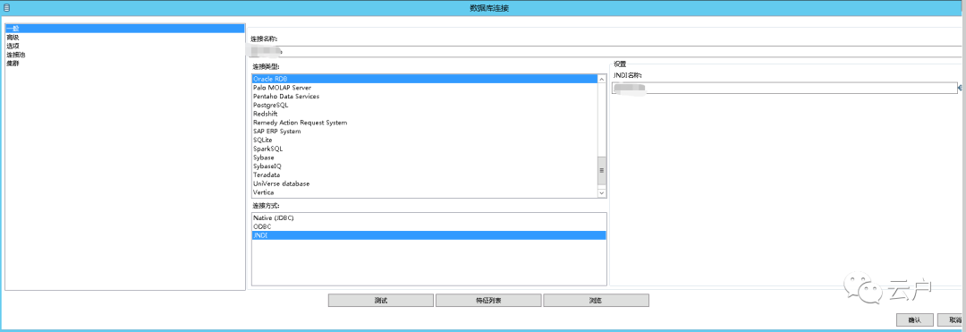 当数据库连接是oracle,并且版本大于12时,需要选择oracle RDB方式,并且对应的数据库连接信息需要在kettle的jdbc配置文件(kettle\data-integration\simple-jndi\jdbc.properties)中进行配置,而在设置数据库连接时只需要输入对应定义的JNDI名称即可