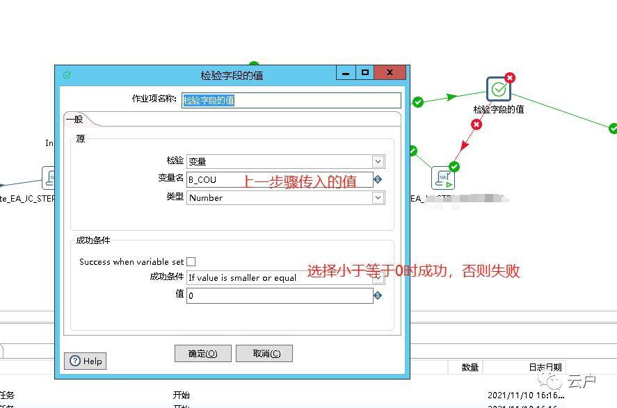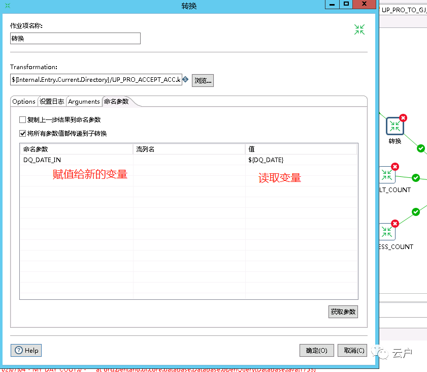 设置在父作业中变量生效,即可将变量的值传给作业,进而在下一步骤的组件中获取到