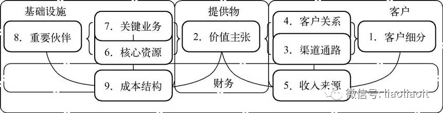 客户细分,价值主张,渠道通路,客户关系,收入来源,核心资源,关键业务,合作伙伴,成本结构,