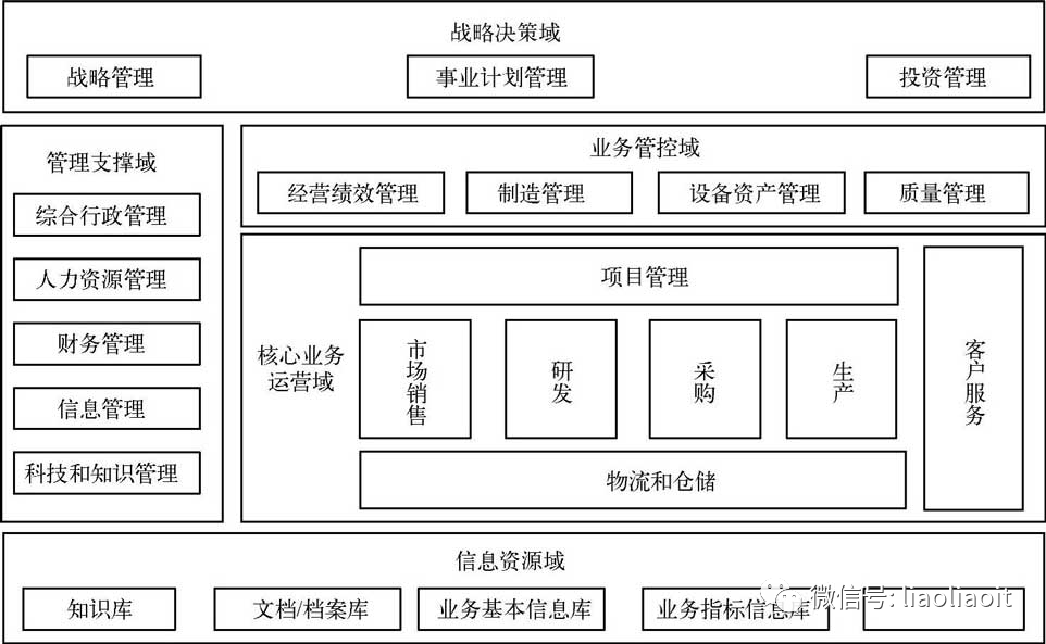 业务域与业务流程分析:渠道与服务域,核心业务域,业务支撑域,管理决策域