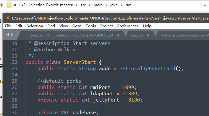 使用JNDI-Injection-Exploit-1.0-SNAPSHOT-all.jar启一个ldap服务 ,如果出现端口绑定报错,可以下载源码,重新编译。