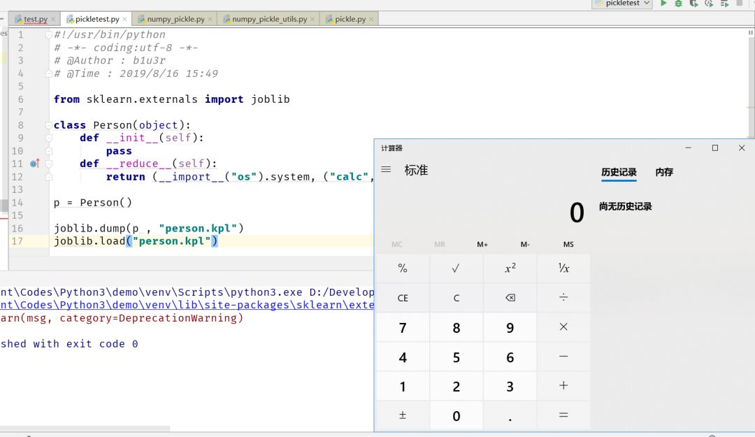 .pkl的文件,这让我很好奇,问了几个朋友也没有认识这个模块的,谷歌也没找出关于这个模块的漏洞文章,python 反序列化漏洞都是在讲 pickle、cPickle 和 PyYaml 的。