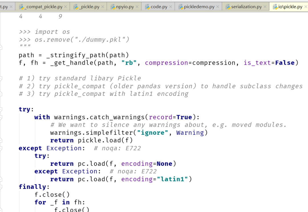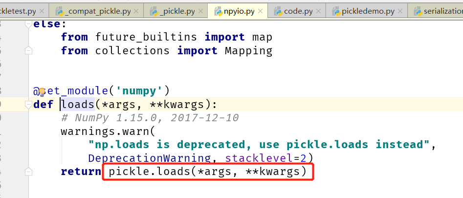 numpy 的 load 函数中判断如果 allow_pickle 为 True,则调用 pickle.load