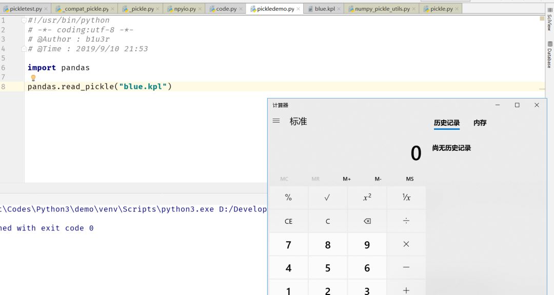#!/usr/bin/python# -*- coding:utf-8 -*-# @Author : b1u3r# @Time : 2019/9/10 21:53import pandaspandas.read_pickle("blue.pkl")