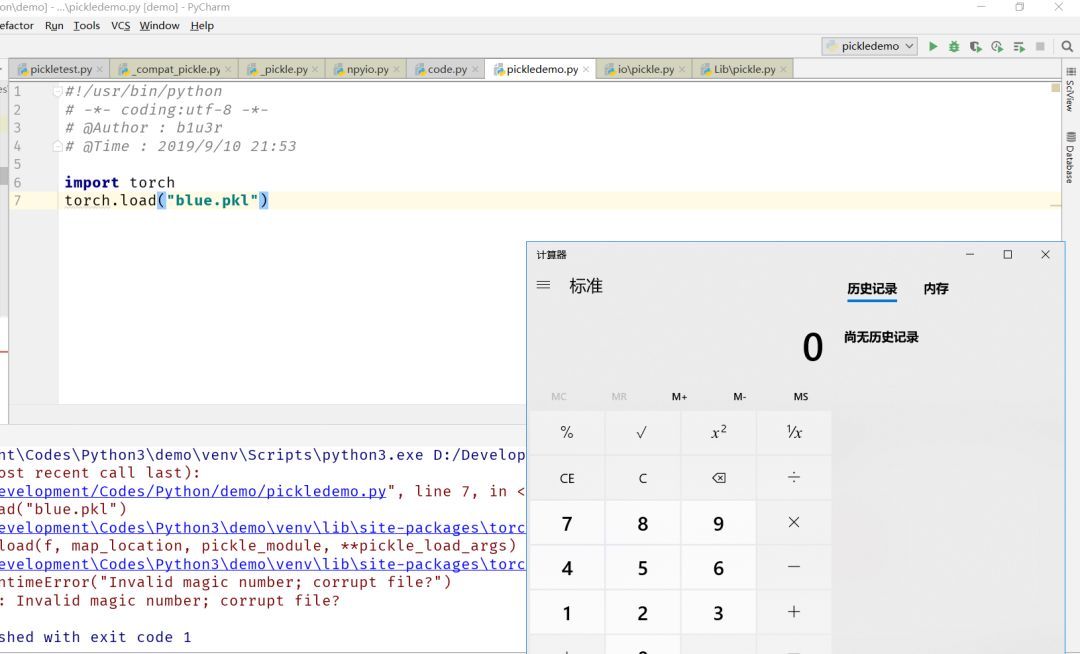 #!/usr/bin/python# -*- coding:utf-8 -*-# @Author : b1u3r# @Time : 2019/9/10 21:53import torchtorch.load("blue.pkl")