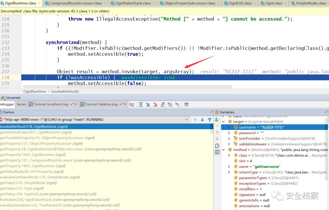继续跟进,直到这一步invokeMethod:518, OgnlRuntime (ognl)