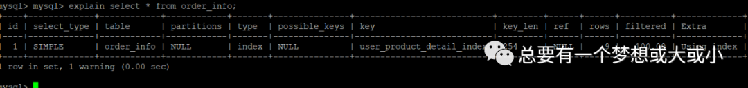 | Extra | 关于MYSQL如何解析查询的额外信息 |