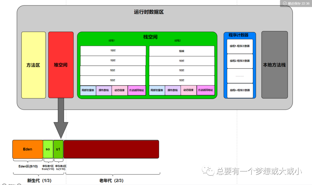 先上一个含堆空间细分的运行时数据区
