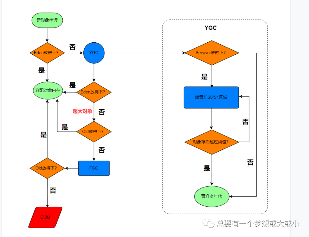 几乎所有的Java对象都是在Eden区被new出来的(例外:对象太大,Eden放不下,放到老年代)
