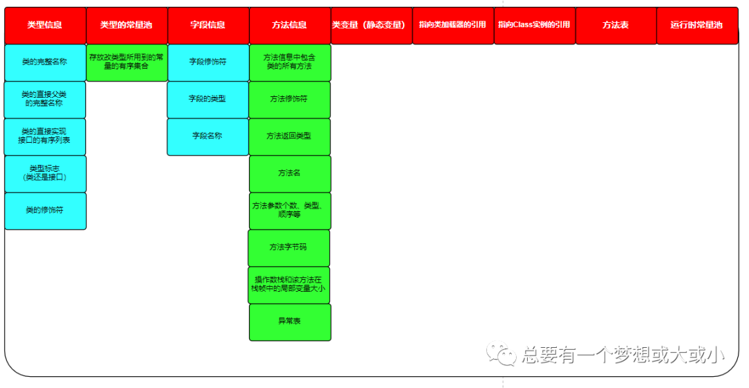 方法区和Java堆一样,是各个线程共享的内存区域,它是用来存储已被虚拟机加载的类信息、常量、静态变量、即时编译其编译后的代码等数据