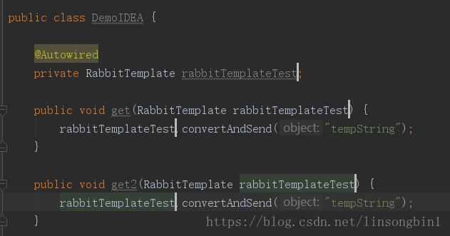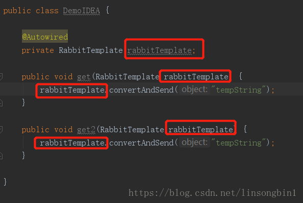上面的代码中,有5个地方用到了rabbitTemplate文本,如何批量修改呢?