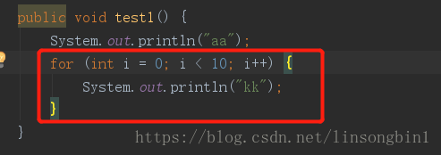 可以将光标定位在for循环的左大括号里,然后使用ctrl+shift+.