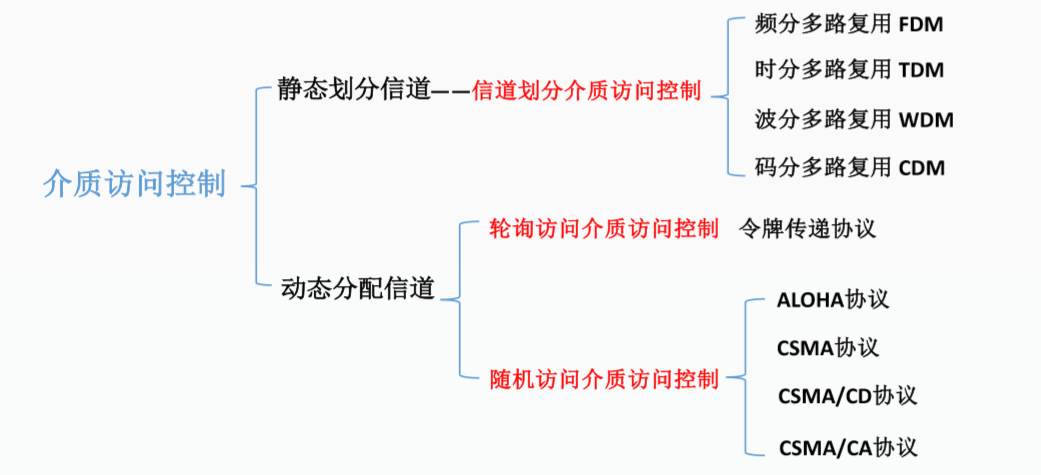 3. 随机访问介质访问控制:所有用户可随机发送信息。发送信息时占全部带宽。可能会导致不协调