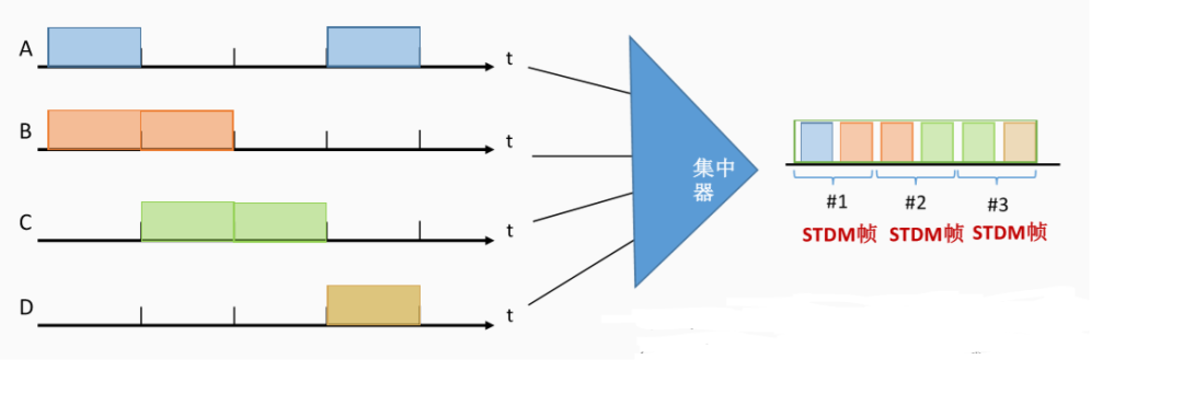 每一个STDM帧中的时隙数小于连接在集中器上的用户数。各用户有了数据就随时发往集中器的输入缓存,把缓存中的输入数据放入STDM帧中,一个STDM帧满了就发出。STDM帧不是固定分配时隙,而是按需动态分配时隙。