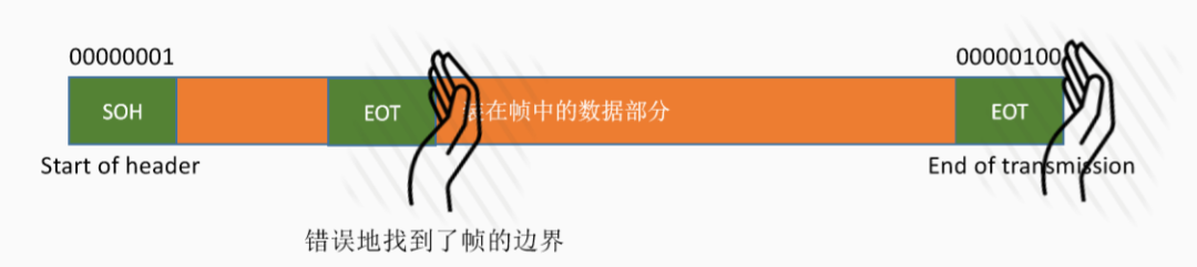 1. 当上图的第1个帧的第一个字节出错(由5出错为4)时,就会导致告诉接收方这个帧有4个字符,进一步导致第2个帧的首个字符由原来的5向前换成原来第一个帧的最后一个字符4;最终导致后面的帧都发生错误。