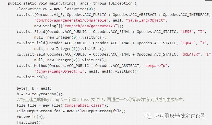 ASM 十分底层,比如我们要生成一个包含几个属性和一个方法的接口,其代码如下: