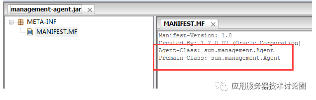 agent jar 包的manifest 文件中指定了agentMain方法所在的类