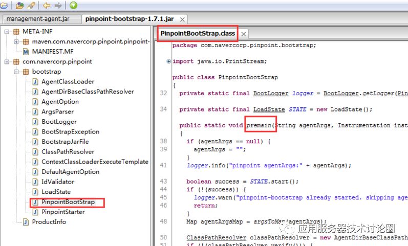 们注意到premain-class指定的class有一个方法premain,这个方法即入口函数Agent-Class:对应运行时。