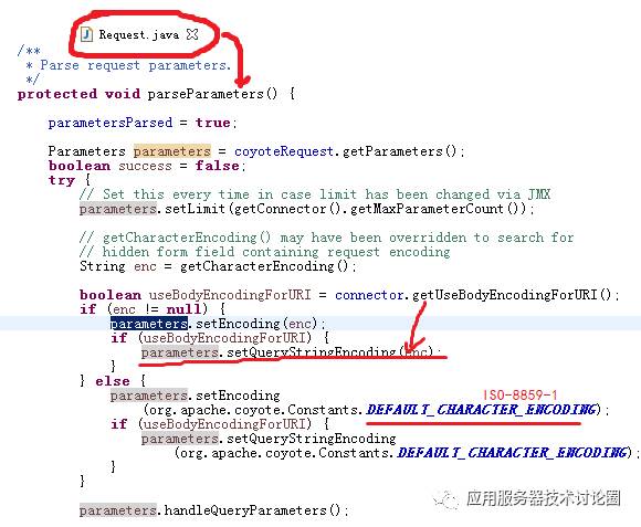 Parameters是Tomcat基于参数的一个抽象,当encoding属性设置上了,在解析参数的时候会对参数部分进行解析;