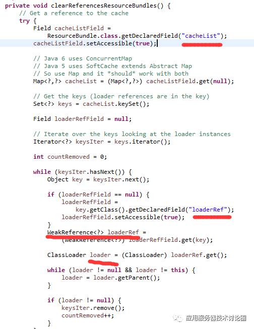 我们一般在应用中进行资源读取,一般都会用到ResourceBundle,但我们一定注意的是,当前应用的WebClassLoader再读取资源的时候,和ResourceBundle是有关联的,可以看看ResourceBundle的源码: